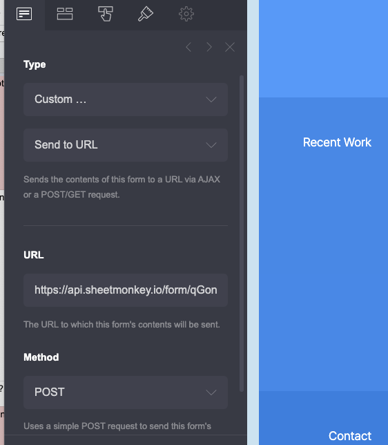Optionally, you can set up a redirect for when the form is successfully submitted.